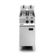 Fry delicious food accurately with this Opus 800 Twin-Tank Free Standing Electric Fryer which comes with two independent fryer tanks for greater versatility. Boasting a precise thermostatic control, the fryer is ideal for a variety of busy commercial kitchens, whether it’s a large pub or a restaurant. The hinged, lift out element with safety interlock makes it easy to access and clean the tank.